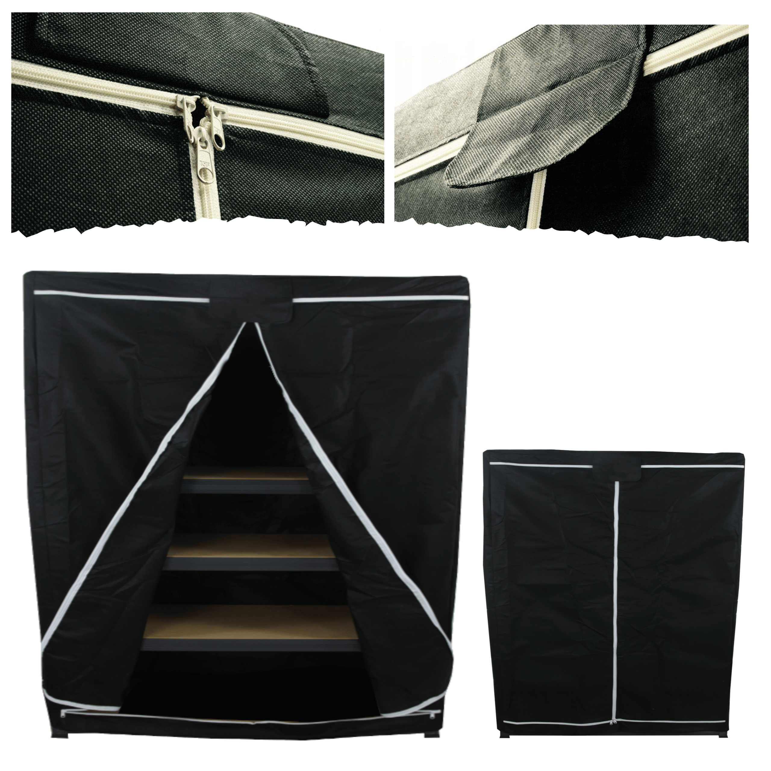 Flizelina to włóknina polipropylenowa o stałej gramaturze. Jest elastyczna i trwała, nie pruje się i nie mechaci. Oddycha, więc pod osłoną nie gromadzi się wilgoć, co ogranicza ryzyko pleśni. Dzięki temu pokrowiec „pracuje” razem z półkami, zamiast zamykać je na głucho. Zamki ułożone tak, by był pełny dostęp do każdego poziomu, zwiększają ergonomię. To lekki materiał, który dobrze znosi codzienną eksploatację i częste pranie ręczne.