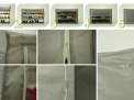 Pokrowce na regały z tworzywa, są przygotowane do wszystkich standardowych modeli. Na długość szerokość i głębokość. Odpowiednio wszyte od frontu zamki błyskawiczne, umożliwiają swobodny dostęp do każdej z półek. Przewiewna zasłona działa jak wizualny filtr. Gdy chcesz – ukrywa, gdy trzeba – odsłania.