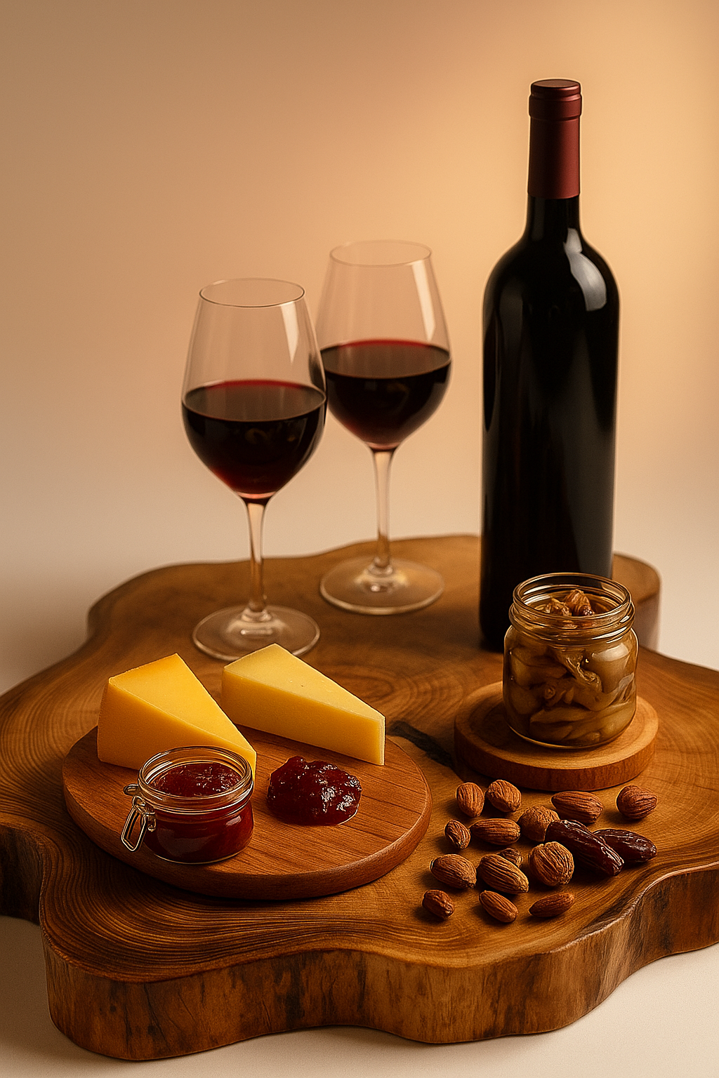 Pełne, wytrawne czerwone wina – jak Cabernet Sauvignon czy Shiraz, mają wyraźne taniny i głębię. Z takim winem warto łączyć bardziej intensywne smaki. Oczywiście zakąski poniżej proponujemy według doświadczeń naszych kubków smakowych. Są to: